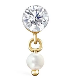 Budget 🌟 Maria Tash Yellow Gold Pearl Charm (3mm) Earrings 🤩