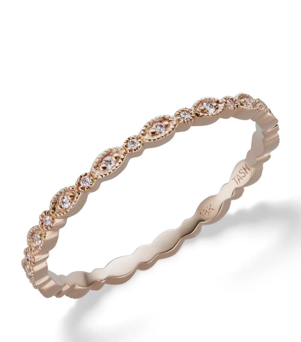 Piercing expert MARIA TASH sways towards the traditional with this slim finger ring, yet maintains her signature flair for contemporary artistry. Crafted in nickel-free and hypoallergenic 18-karat rose gold, the delicate band is imagined with scalloped edging, while crisp micropavé diamonds twinkle within textured borders.