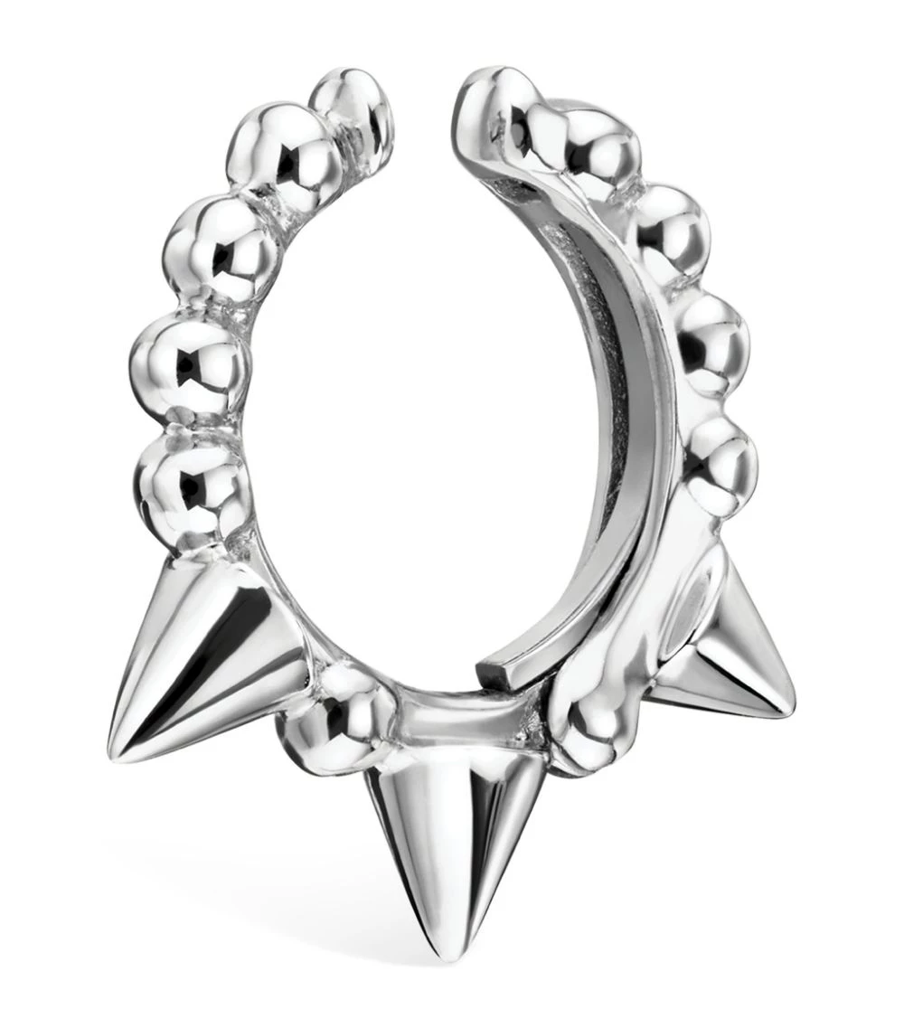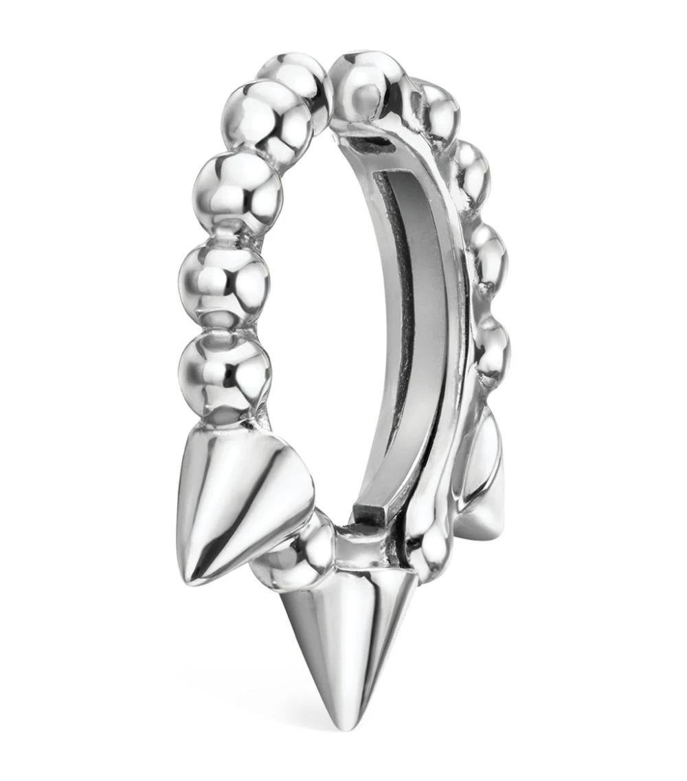 We couldn’t think of anything better than a revisited take on MARIA TASH’s signature spikes for the jewellery designer’s limited edition Holiday collection. Here, they’re suspended from the Granulated Triple Short Spike Tash Cuff in celebration of modern rebellion, striking the perfect balance of elegance and versatility with a comfortable hinge mechanism that allows it to be worn in the lobe or helix for a bold accent.
