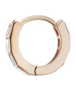 Building her brand around fine body jewellery, MARIA TASH has revolutionised the piercing industry thanks to her luxurious approach to precious metals and stones. A far cry from industrial steel and heavy posts, the designer has since expanded into much more than simply earrings. Inspired by Indian and Pakistani styles, this delicate single earring from the Invisible Baguette collection is characterised by its minimalist clicker design and is crafted from gold, sprinkled with large white diamonds.