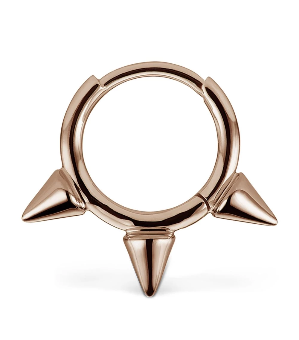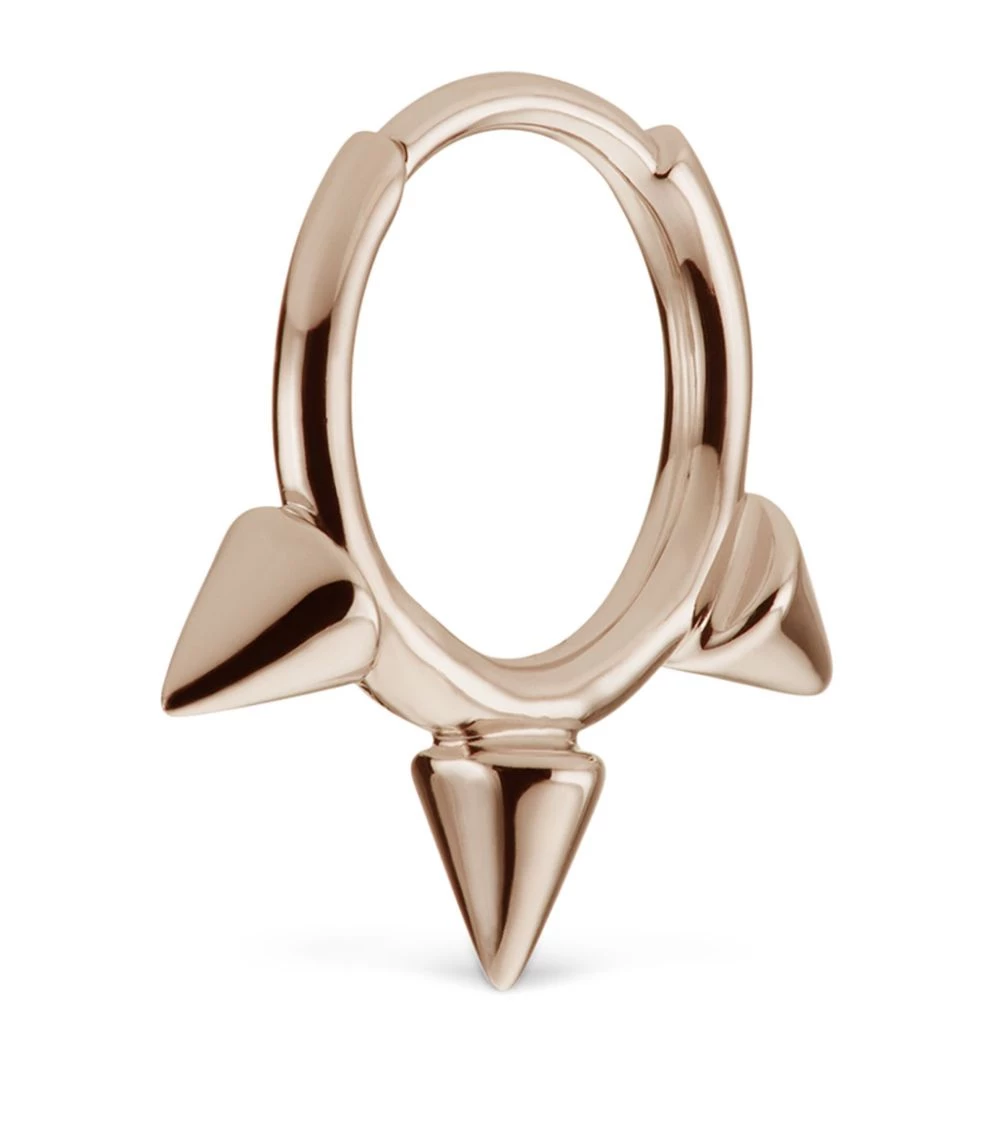 New York-based jewellery label MARIA TASH creates pieces that combine precious stones with modern metalwork and shapes. Drawing inspiration from rock ‘n’ roll aesthetics, the Triple Spike Eternity earring sees three spikes accent a 14-karat rose gold hoop. Style with other earrings from the collection for a unique, curated look.