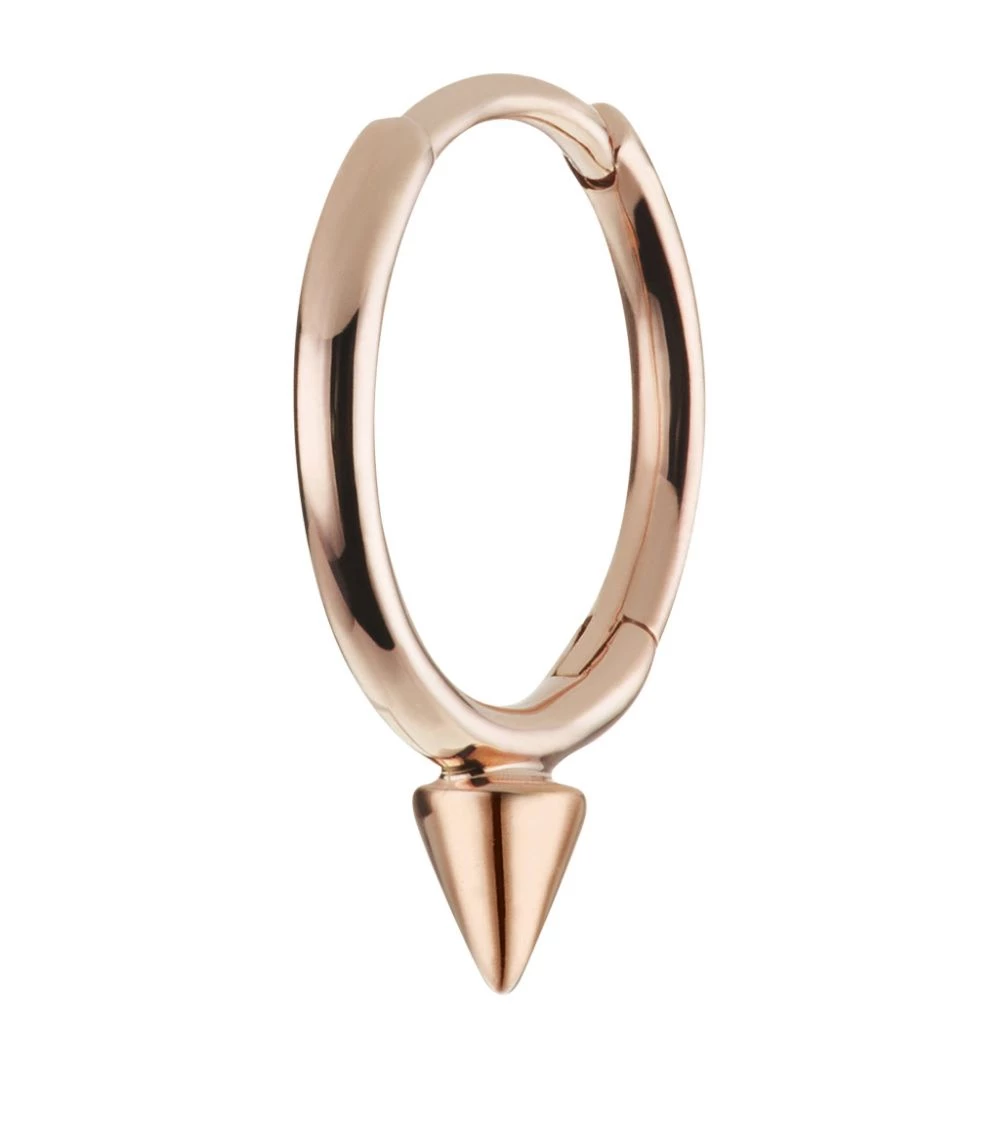 MARIA TASH has been making waves on the jewellery scene for decades with her fusion of fine materials, precious gems and a love of bespoke body piercing. Capturing the label’s haute rock ‘n’ roll identity, this iteration of the easy-to-wear clicker rings is crafted in gleaming, nickel-free and hypoallergenic 14-karat rose gold and spotlights a single punky spike.