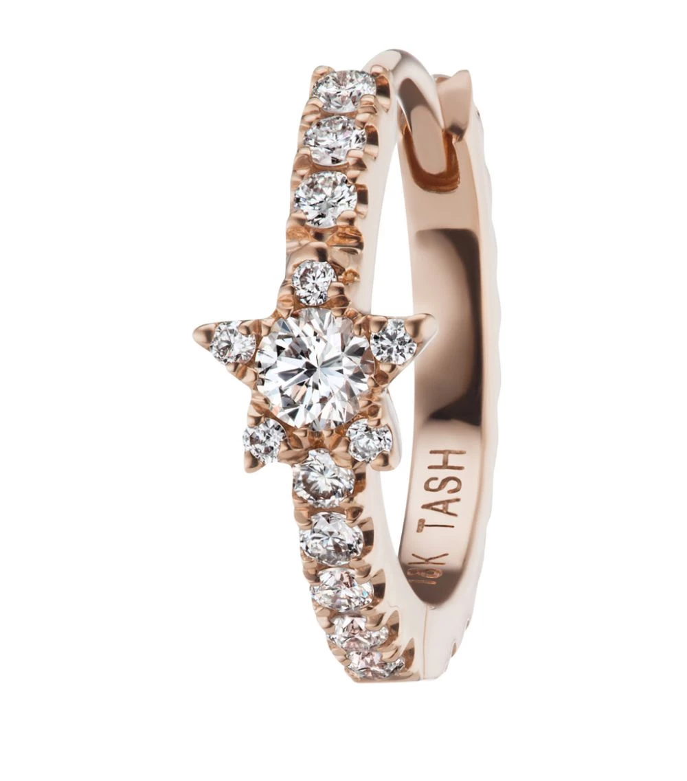 Building her brand around fine body jewellery, Maria Tash has revolutionised the piercing industry thanks to her hedonistic approach to metals and stones. With celestial inspirations making this style stand out from the rest of the Eternity collection, this delicate earring, rendered in nickel-free and hypoallergenic 18-karat yellow gold, is inlaid with gleaming white diamonds and accented with a dazzling star to the centre of the hoop.