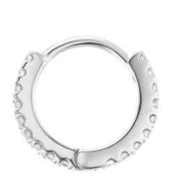 Building her brand around fine body jewellery, MARIA TASH has revolutionised the piercing industry thanks to her luxurious approach to precious metals and stones. A far cry from industrial steel and heavy posts, the designer has since expanded into much more than simply earrings. Inspired by Indian and Pakistani styles, this delicate single earring from the Diamond Eternity collection is characterised by its minimalist clicker design and is crafted from 18-karat white gold, sprinkled – naturally – with brilliant white diamonds.