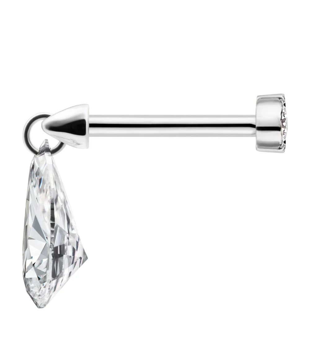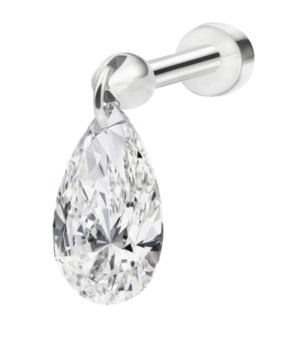 Hailing from New York’s East Village, MARIA TASH has revolutionised the jewellery industry for its dainty yet subversive pieces. Minimally designed to draw attention to the natural beauty of its jewel, this threaded stud earring spotlights the label’s skill in creating an illusion of floating diamonds with a single pear diamond appearing to dangle down from the hidden nickel-free, hypoallergenic 18-karat white gold backing, granting it showstopping power and gentle movement.