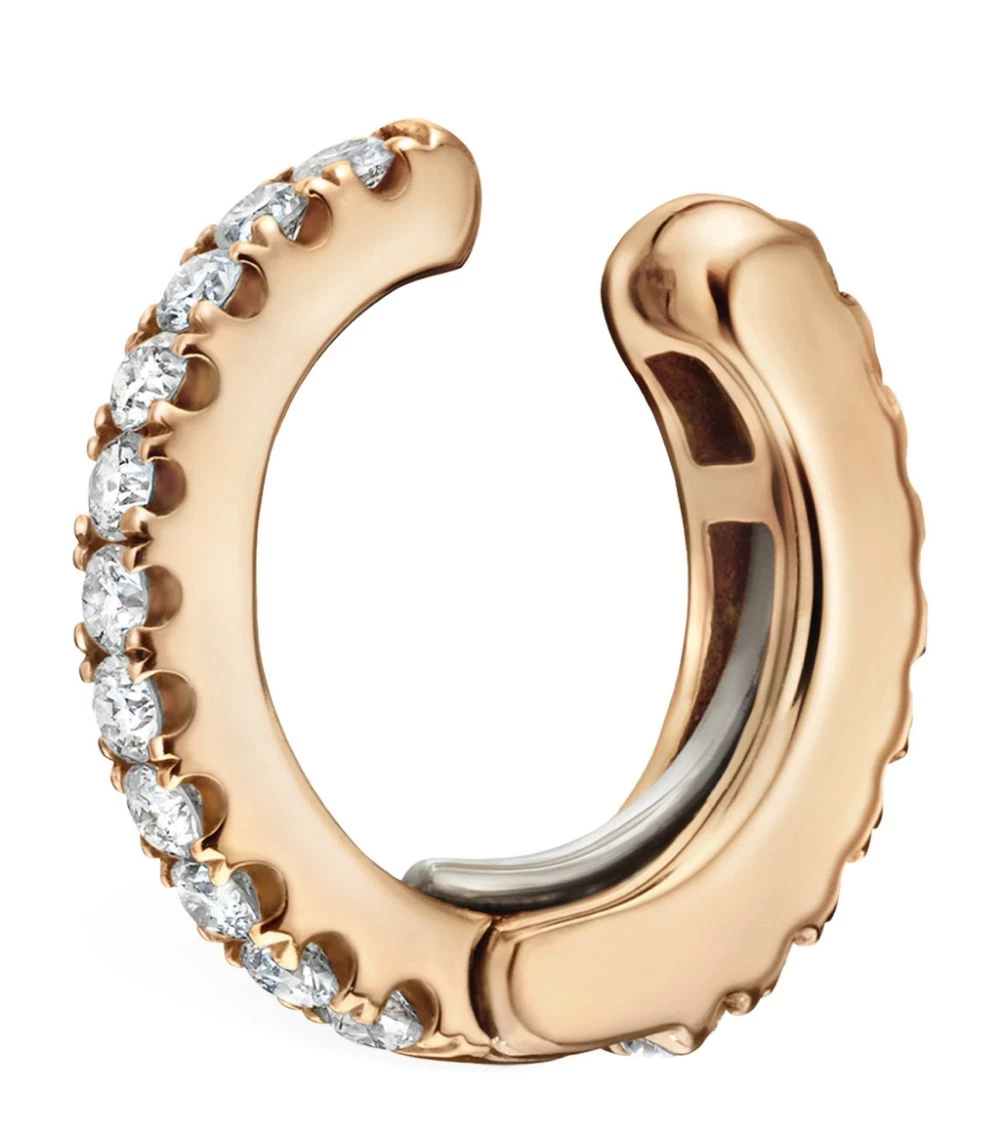 The Eternity Tash ear cuff by MARIA TASH gives you access to the rebellious appeal of a unique and well-curated ear without the commitment of a new piercing – it simply fastens onto your lobe or helix with ease. Once in place, it’s sure to command attention; the glistening diamonds and 18-karat gold are a winning combination when it comes to showstopping elegance.