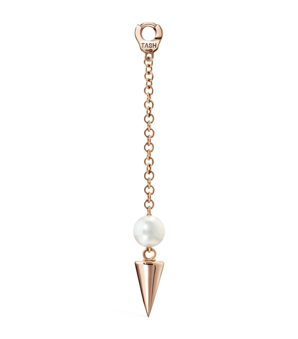 It’s hard not to be compelled by this MARIA TASH earring charm. Rendered in nickel-free and hypoallergenic rose gold, the design sees a short spike and its lustrous pearl suspended from a short chain – a visual motif that’s as enigmatic as it is youthful and rebellious. Pair it with your usual studs and watch as the swinging pendulum brings new life to your signature stack.