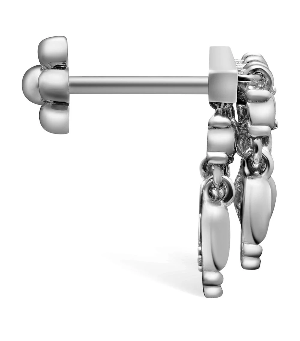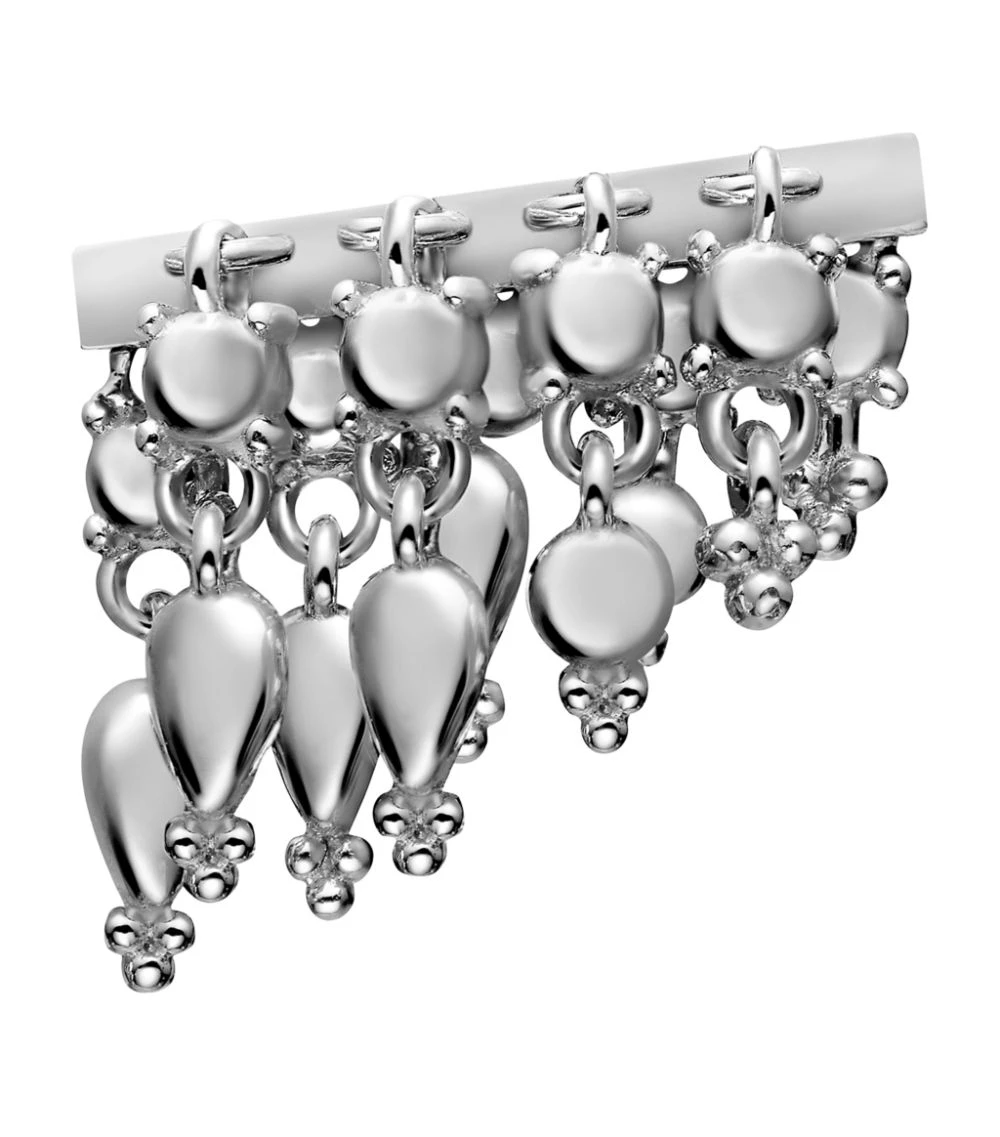 MARIA TASH excels at imbuing lively movement into nickel-free and hypoallergenic designs like this Tassel Bar single left earring. Cascading rose gold strands of solid pear and ball trinities dangle from the bar, adorning your cartilage, high conch or earlobe with shine that twinkles captivatingly with every glance.