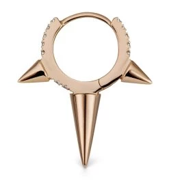 New York-based jewellery label MARIA TASH creates nickel-free and hypoallergenic pieces that combine precious stones with modern metalwork and shapes. Drawing inspiration from rock ‘n’ roll aesthetics, the Triple Long Spike Diamond Eternity earring sees three 18-karat rose gold spikes accent a diamond-encrusted hoop. Style with other earrings from the collection for a unique, curated look.