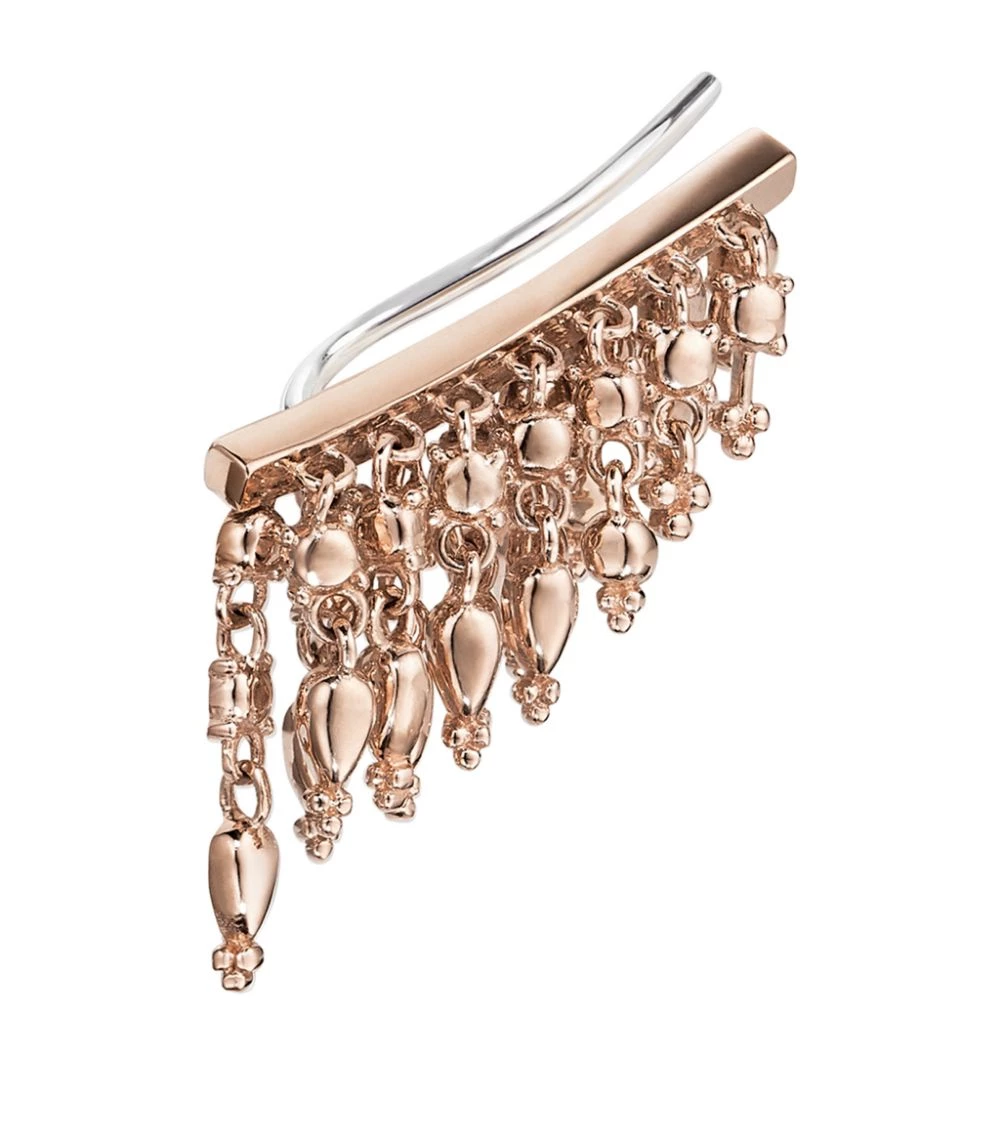 The secret to a well-curated ear lies in the unexpected and as the creator of the concept, MARIA TASH is the perfect choice to realise this vision. This glistening rose gold climber – with adjustable wire –is designed to follow the curvature of your ear, while its delicate tassels lend movement and intrigue befitting the sartorial rebel.