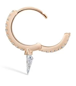 New York-based jewellery label MARIA TASH combines two of its most coveted collections into one piece with the Single Silhouette Diamond Short Spike Eternity Hoop earring. Drawing inspiration from rock ‘n’ roll aesthetics and fusing that with the pure radiance of precious stones and modern metalwork, the design exudes contemporary elegance with a subversive edge; note the 18-karat rose gold hoop that’s set with a row of scintillating white diamonds before giving way to a single floating diamond that resembles the shape of a spike.