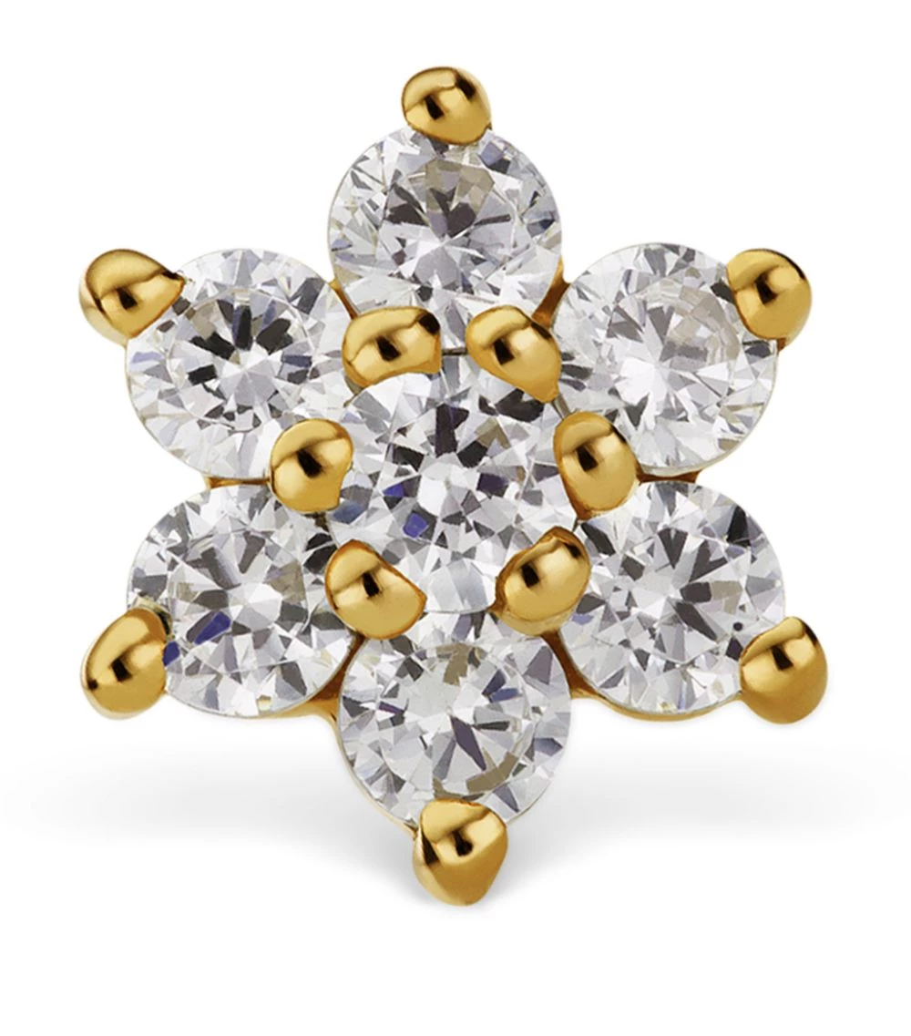 Renowned the world over for its design-led approach to piercing, MARIA TASH translates the personal style of its clientele into a curated collection of ear jewellery. Add to your own unique assortment with this nickel-free, hypoallergenic flower-shaped stud; held in place with 18-karat yellow gold prongs, the blooming arrangement of seven shining diamonds adds a feminine touch, whether worn alone on the lobe or among others.