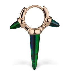 MARIA TASH has been making waves on the jewellery scene for decades with her fusion of fine materials, precious gems and a love of bespoke body piercing. Capturing the label’s haute rock ‘n’ roll identity, this iteration of the easy-to-wear clicker rings is crafted in gleaming 14-karat rose gold and adorned with iridescent lab-grown opal spikes for a darkly mysterious finish.