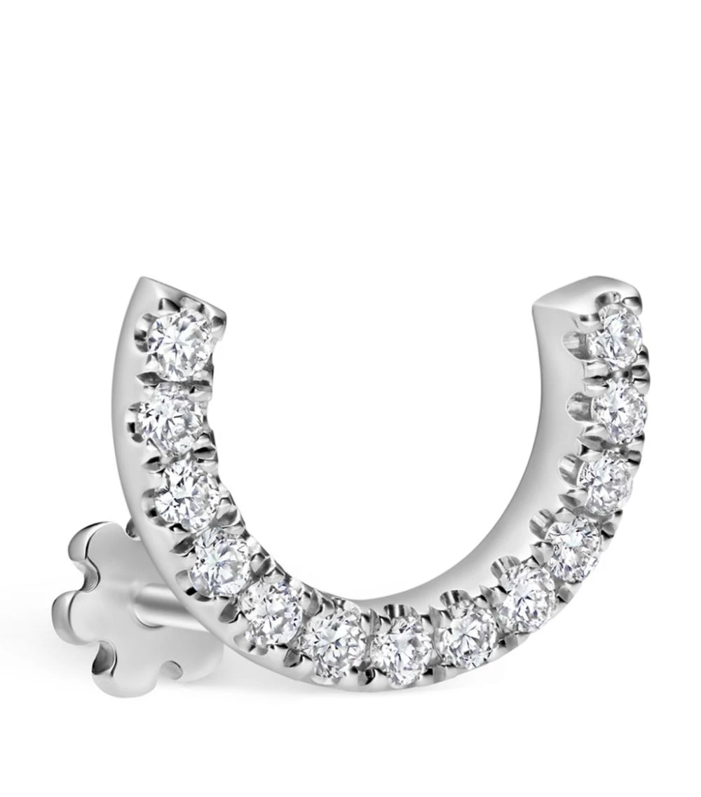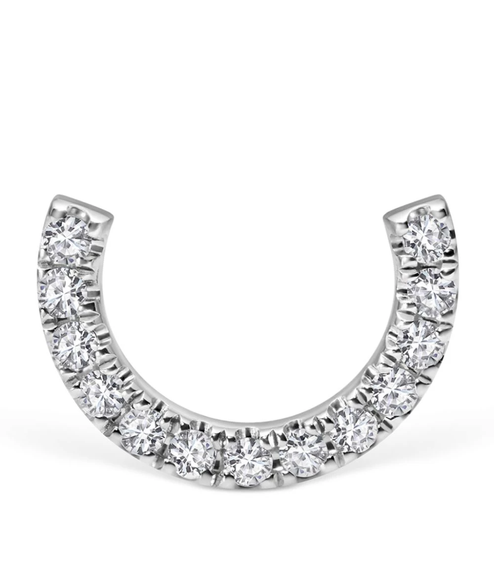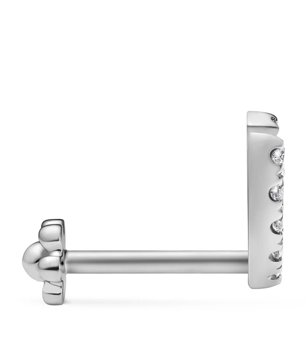 If one jewellery designer knows how to reimagine the art of the curated ear, it’s MARIA TASH. Take the Scallop Set Diamond Demi Eternity Threaded Stud Earring; perfect for adding a unique twist to a cartilage piercing, this single piece is defined by a curve of diamonds, set upon a backdrop of nickel-free and hypoallergenic 18-karat white gold. Simply tuck the ends of the rounded stud into the fold of the outer ear to conceal the opening, giving the effect of a curtain of twinkling stones.