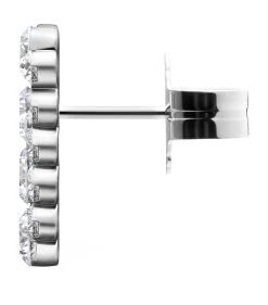 MARIA TASH speaks to the rebels of the jewellery world, conceptualising unique pieces to be worn in all manner of piercings, each elevated by her use of premium materials and expert crafting. The threaded stud is a coveted signature that’s seen many iterations, but perhaps none as powerfully linear as the Apsara Bar right earring which hosts a column of white twinkling diamonds alongside five larger ones in the label’s Invisible set, backed by fine 18-karat white gold.