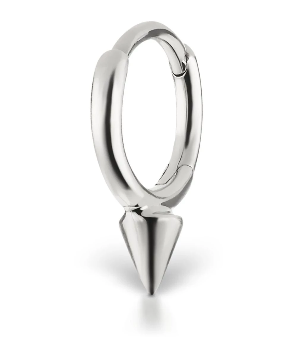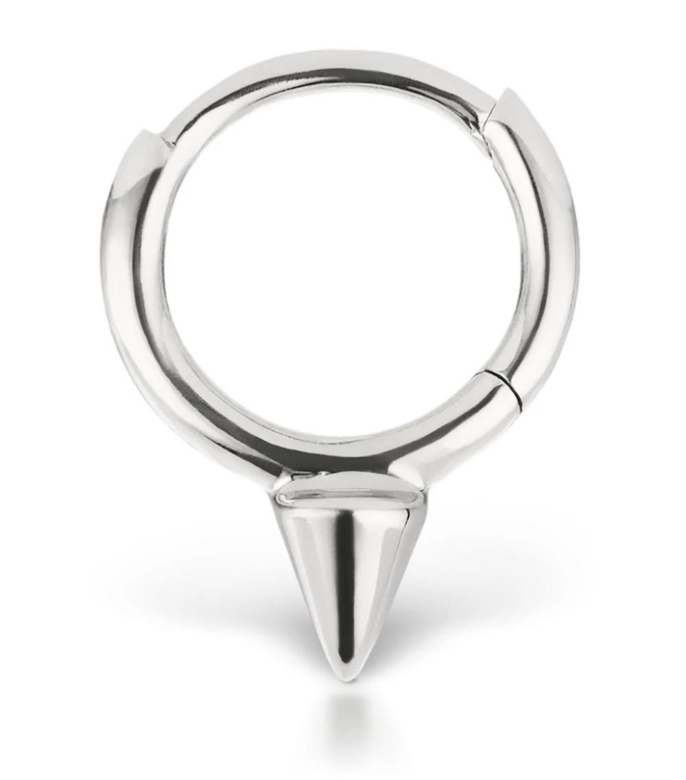 Drawing inspiration from rock ’n’ roll aesthetics, MARIA TASH’s Single Spike collection sees a minimal, pyramid-shaped accent elevated with modernity through a combination of precious metals. Crafted from nickel-free, hypoallergenic 14-karat white gold, this single hoop boasts a simple design to put the jewellery brand’s unique, diamond-encrusted pieces into the spotlight.