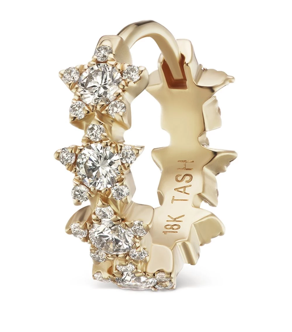 MARIA TASH speaks to the rebels of the jewellery world, conceptualising unique pieces to be worn in all manner of piercings, each elevated by her use of fine materials, precious gems and expert crafting. Inspired by the night sky, this celestial iteration of the label’s sought-after clicker rings is crafted in 18-karat yellow gold and exhibits an otherworldly array of moulded stars, each set with abundant diamonds.