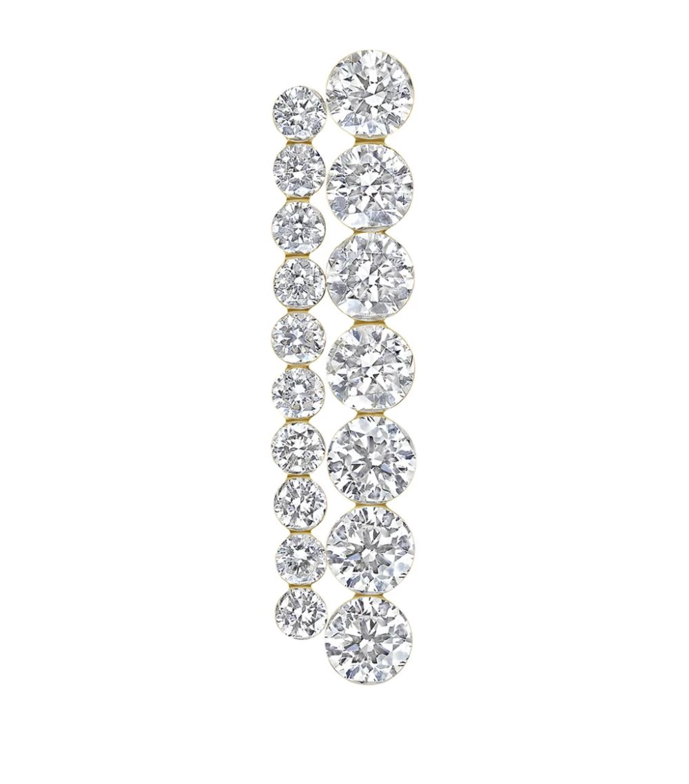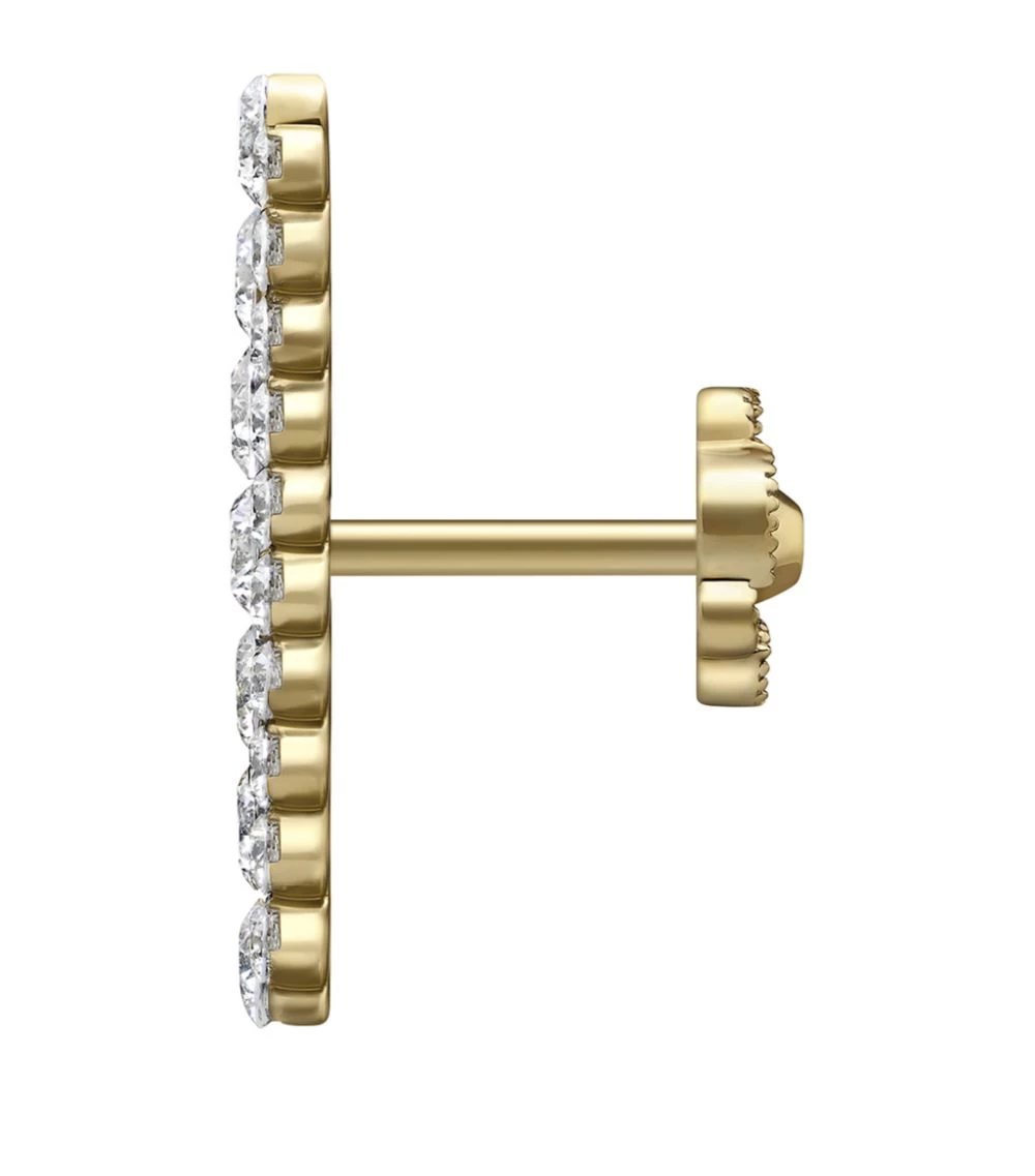 MARIA TASH’s Aspara Bar earring adds an unashamedly attention-commanding finish to evening ensembles. Presented as part of the coveted Invisible Set collection, so named because its twinkling diamonds are ‘invisibly set’ against nickel-free and hypoallergenic yellow gold, the accessory can be worn alone or styled as part of a pair for ultimate versatility across invite-only social events.