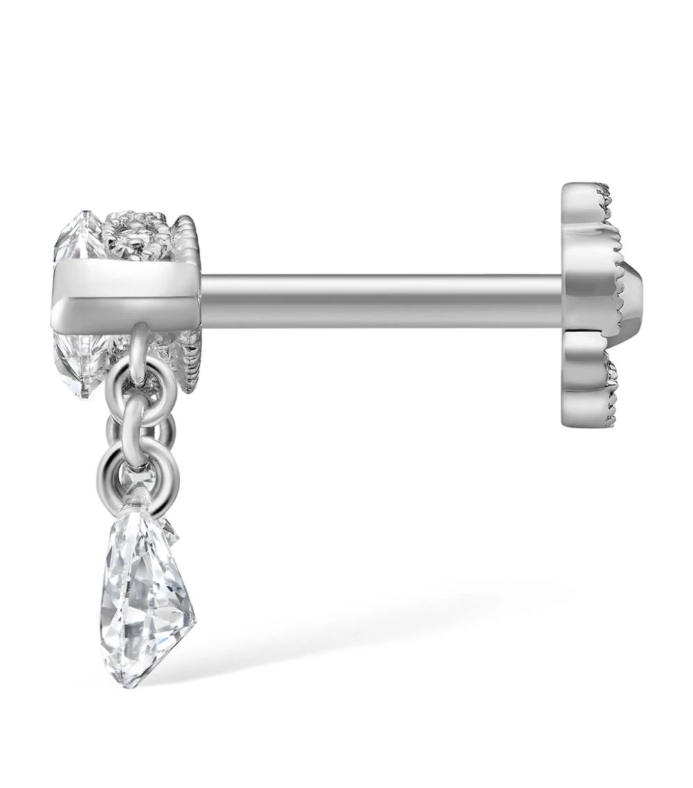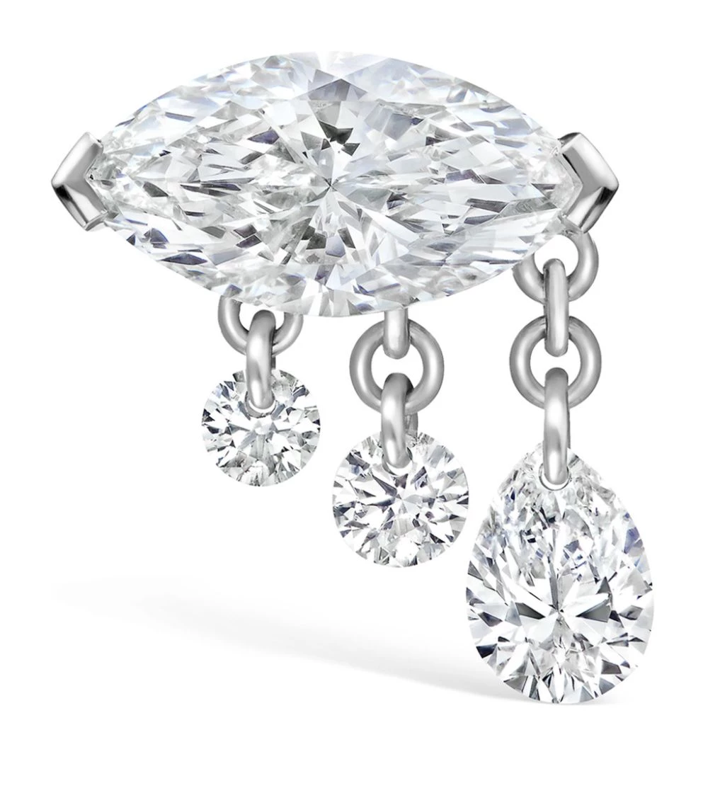 Crafted with a radiant marquise diamond centrepiece, this shimmering MARIA TASH earring is imagined in white gold for a striking finish. Offset by three teardrop diamonds that ripple in a hanging design, this ornate accessory will embrace your left lobe with the label’s simultaneously delicate and eye-catching savoir-faire.