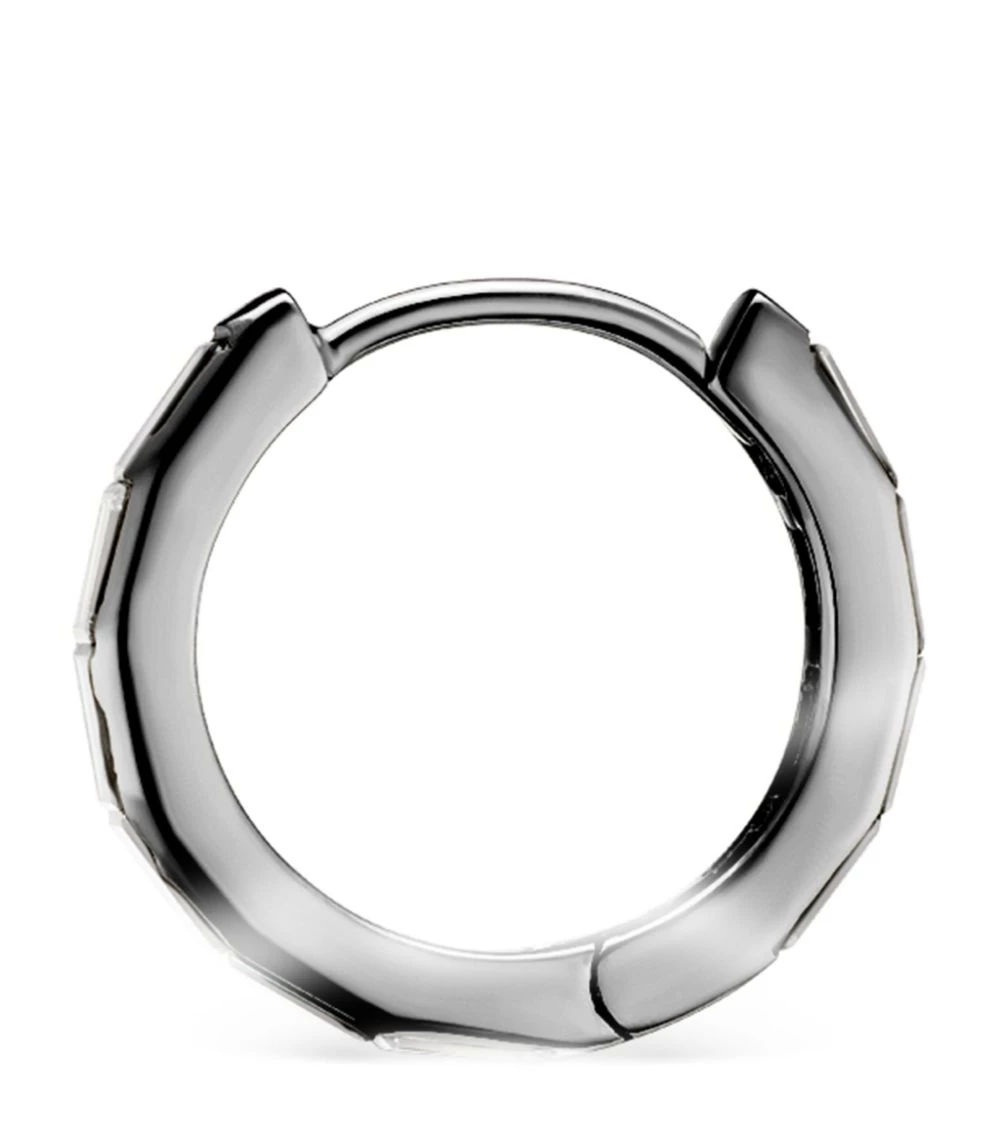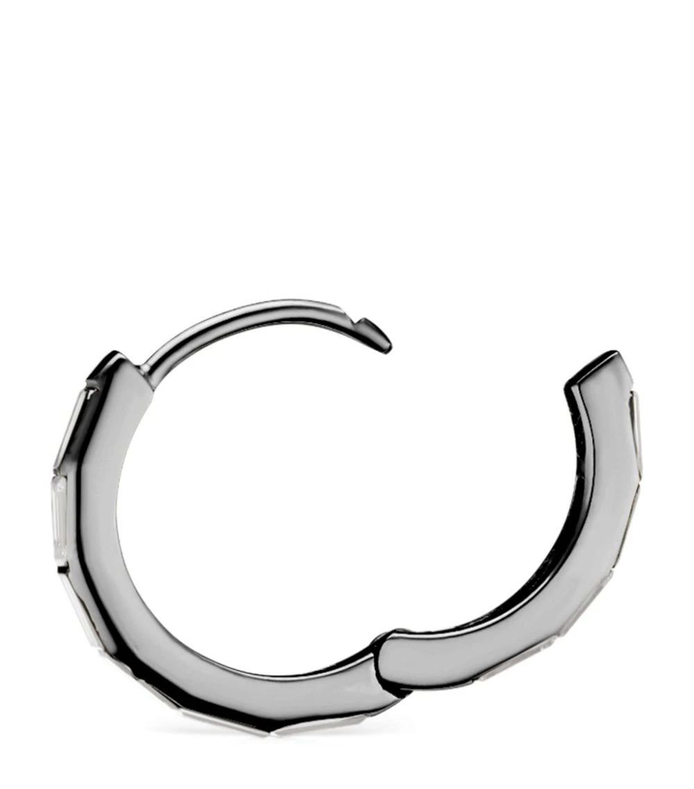 Building a brand around fine body jewellery, MARIA TASH has revolutionised the piercing industry thanks to its luxurious approach to precious metals and stones. Inspired by Indian and Pakistani styles, this delicate single earring from the Invisible Baguette collection is characterised by its minimalist clicker design, gold composition and its generous sprinkling of diamonds.
