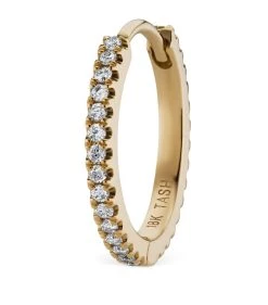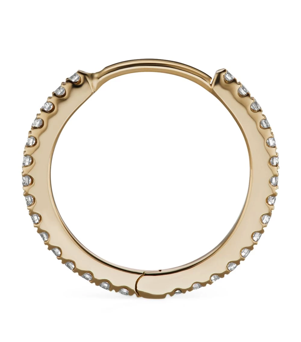 Renowned the world over for its design-led approach to piercing, MARIA TASH translates the personal style of its clientele into a curated collection of ear jewellery. Make a start on your very own unique assortment withthis eternity hoop; embedded with 30 white diamonds along its outer edge, the timeless 18-karat yellow gold style adds a welcome glint, whether it’s alone on the ear or one of many.