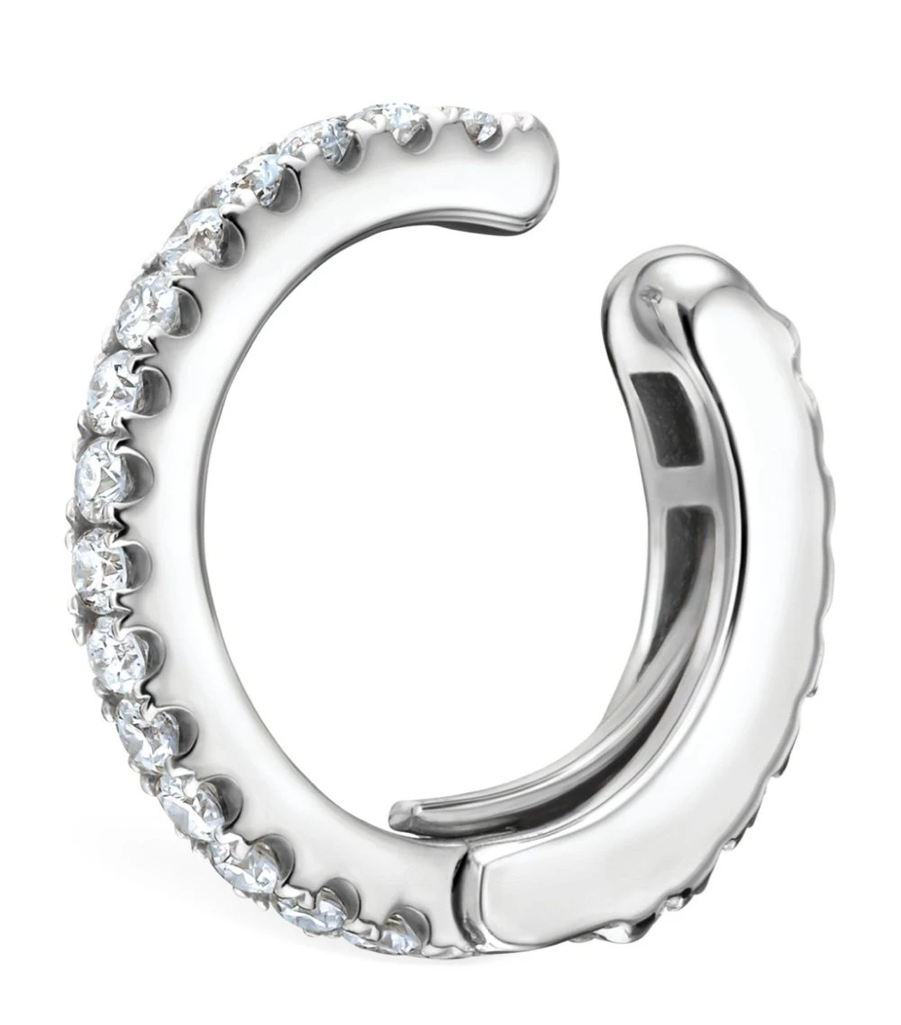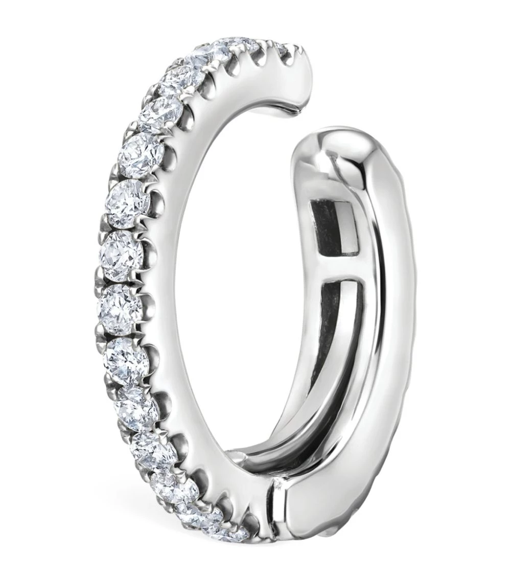 Building her brand around fine body jewellery, Maria Tash has revolutionised the piercing industry thanks to her luxurious approach to precious metals and stones. A far cry from industrial steel and heavy posts, the designer has since expanded into much more than simply earrings. Inspired by Indian and Pakistani styles, the Holiday Tash Cuff from the Diamond Eternity collection is characterised by comfortable hinge mechanism and 18-karat white gold, sprinkled – naturally – with a series of sparkling diamonds.