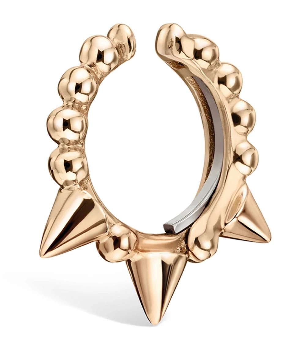 We couldn’t think of anything better than a revisited take on MARIA TASH’s signature spikes for the jewellery designer’s limited edition Holiday collection. Here, they’re suspended from the Granulated Triple Short Spike Tash Cuff in celebration of modern rebellion, striking the perfect balance of elegance and versatility with a comfortable hinge mechanism that allows it to be worn in the lobe or helix for a bold accent.