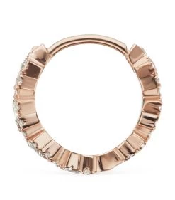 Professional piercer and coveted jeweller MARIA TASH expands on her sought-after selection of dainty earrings and fine jewellery with the Eternity collection: a line of timeless pieces adorned with precious gemstones. Taking influence from the celestial, the Constellation earring sees a row gleaming white diamond stars accent the 18-karat rose gold hoop.