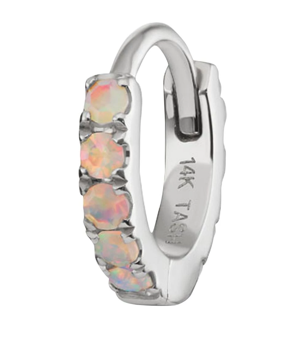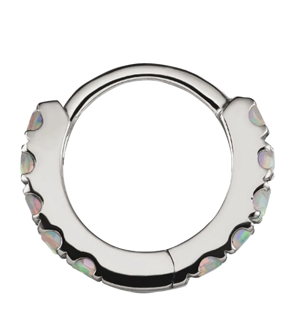 Like the ephemeral hues that swirl on the surface of a bubble, opals distill the beauty of nature’s colour spectrum and this MARIA TASH clicker ring is no exception. Shimmering white gold forms the body of this petite accessory, while the lab-grown opals demonstrate a commitment to the future of sustainable gems, delivering an eye-catching radiance as they encircle the design.