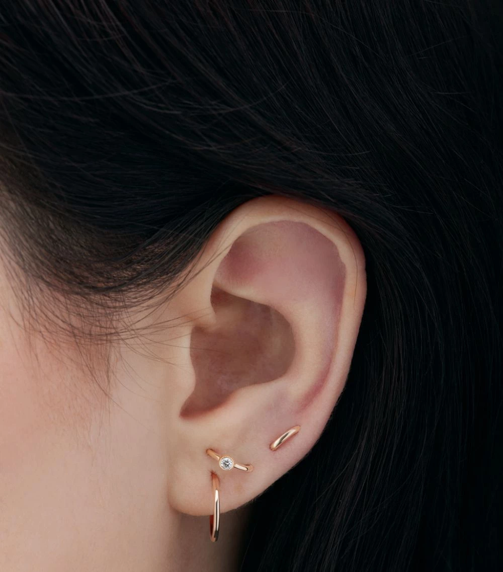 Hailing from New York’s East Village, MARIA TASH has become world-renowned for its dainty yet subversive jewellery like this nickel-free and hypoallergenic single stud earring. Set in a yellow gold scalloped bezel to give it the appearance of being encircled by an intricate braid, its petite white diamond lends a hint of sparkle to earlobe or cartilage piercings.