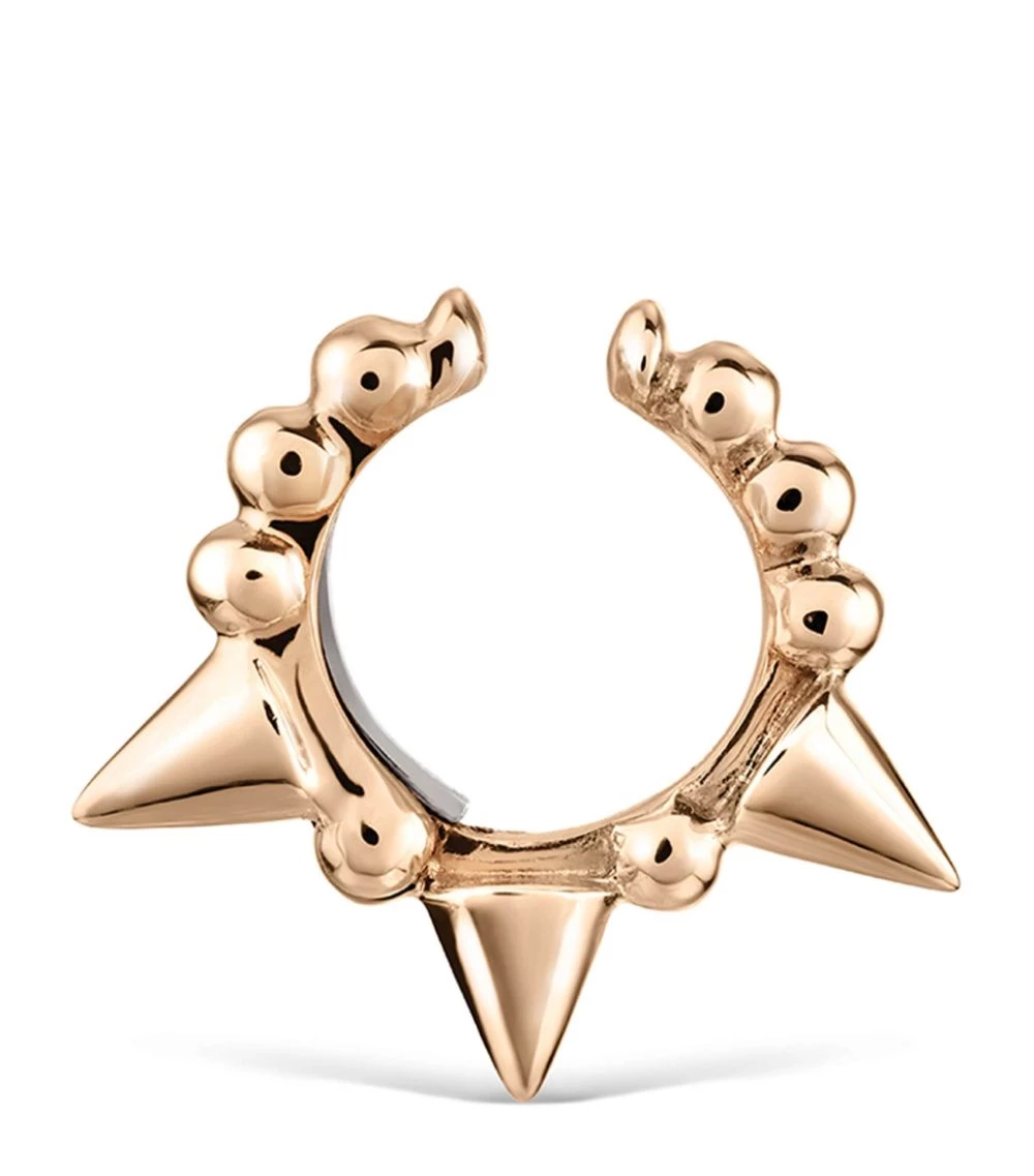 As fans of the brand will already know, MARIA TASH can’t resist a spike or two. After all, the sharp details play perfectly into the rebellious spirit of the jeweller. Take this ear cuff, for example; rendered simply in 14-karat gold, it presents a trio of short spikes assembled around a hoop, each one dangling daringly and bringing a tangible edge to your curated ear.