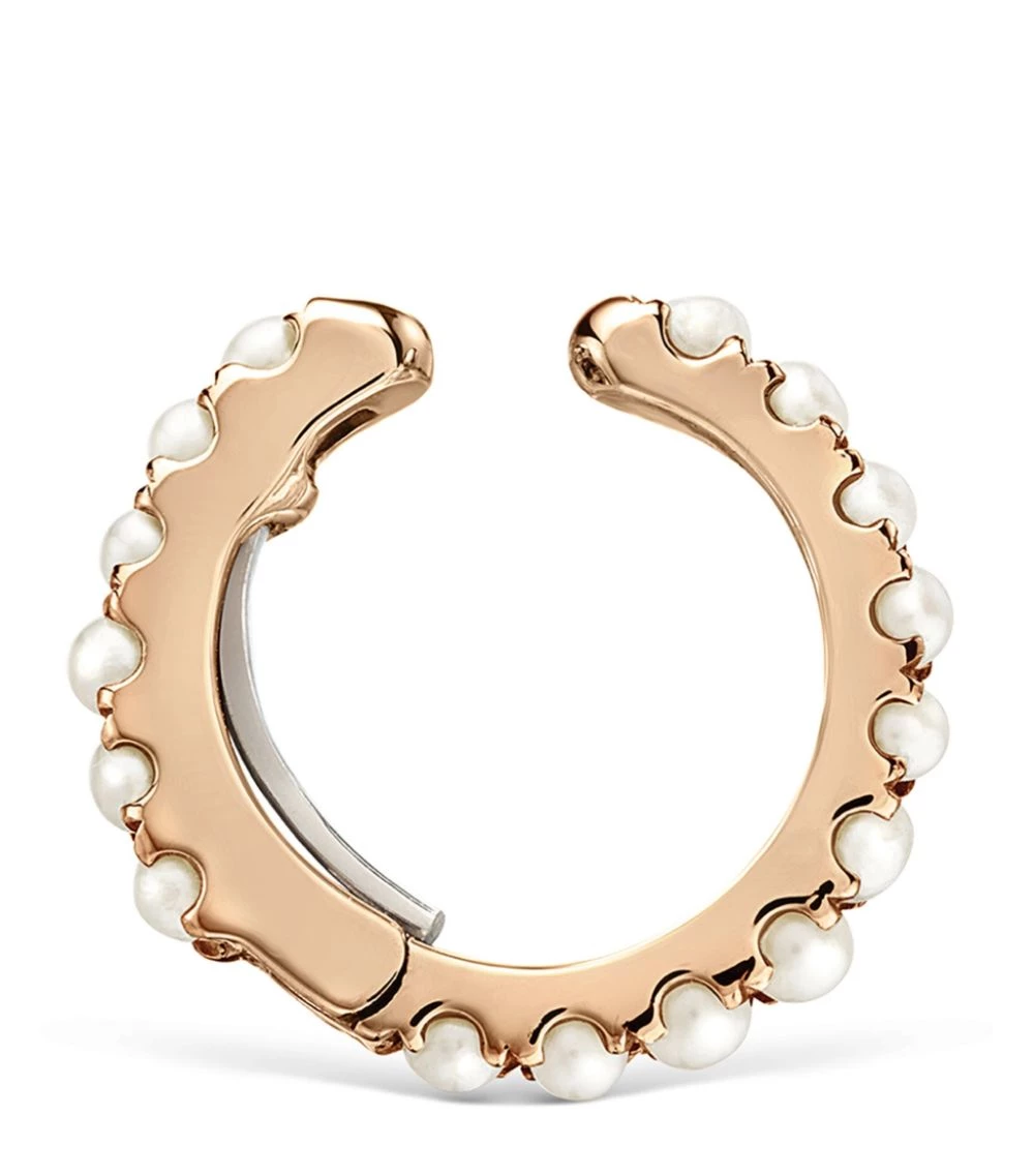 There’s a certain air of elegance that comes with wearing pearls – but when envisioned through the modern lens of MARIA TASH, they’re given a new lease of life. Why not wear yours the curated way with the Holiday Pearl Eternity Tash Cuff? It’s crafted from shimmering rose gold and plays host to a series of spherical pearls that, when secured at the lobe or helix via the comfortable hinge mechanism, take on the jewellery designer’s unique vision of the curated ear.