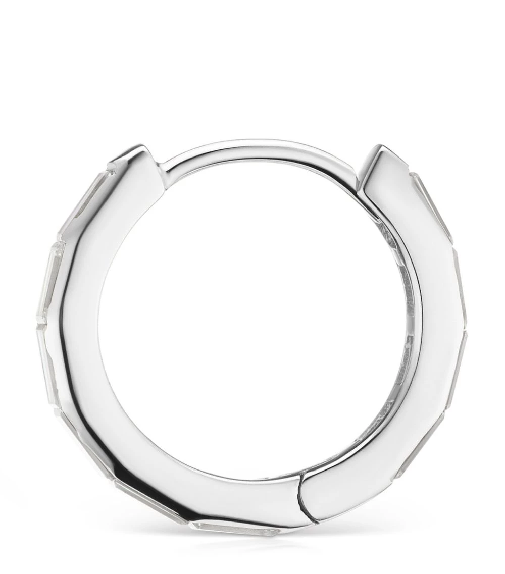 Building a brand around fine body jewellery, MARIA TASH has revolutionised the piercing industry thanks to its luxurious approach to precious metals and stones. Inspired by Indian and Pakistani styles, this delicate single earring from the Invisible Baguette collection is characterised by its minimalist clicker design, its gold composition and its generous sprinkling of diamonds.